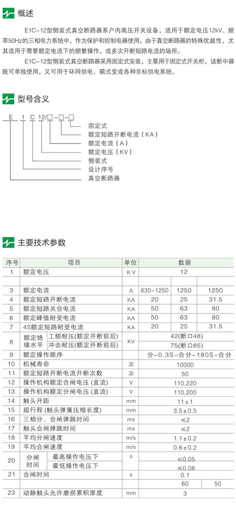 E1C-12側(cè)裝式戶內(nèi)高壓真空斷路器