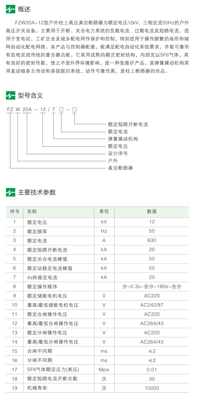 FZW20A-12系列戶外高壓真空斷路器