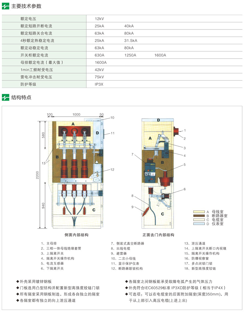 本公司生產(chǎn)銷(xiāo)售的產(chǎn)品有箱式變電站、KYN61-40.5、KYN28A-24、XLM系列充氣式(全密封)環(huán)網(wǎng)柜、GTXGN-12系統(tǒng)智能固體絕緣柜,GGJ、GGD、GCS、GCK、MNS、XL-12、GGD、PZ30等低壓開(kāi)關(guān)柜。變壓器、真空斷路器、負(fù)荷開(kāi)關(guān)、隔離開(kāi)關(guān)、SF6斷路器等高壓元件多年來(lái),持續(xù)為冶金、船舶、航天電力、礦山、以及智能化大樓、高層建筑、醫(yī)院、各大院校等行業(yè)提供高質(zhì)量產(chǎn)品及完善的售后服務(wù)