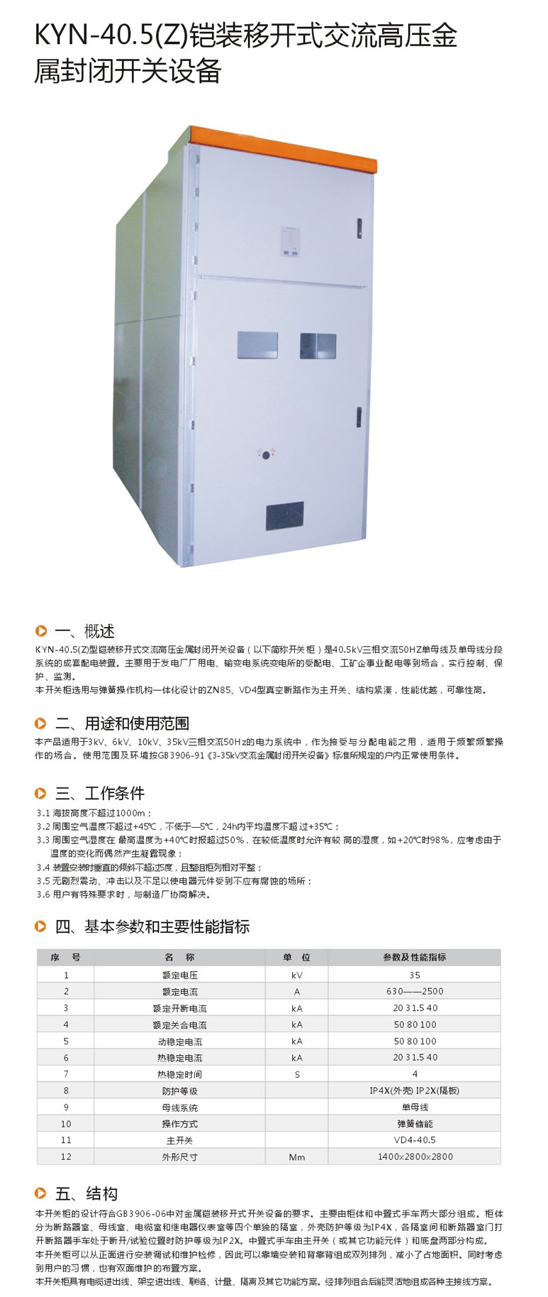 KYN-40.5(Z)鎧裝移開式交流高壓金屬封閉開關(guān)設(shè)備